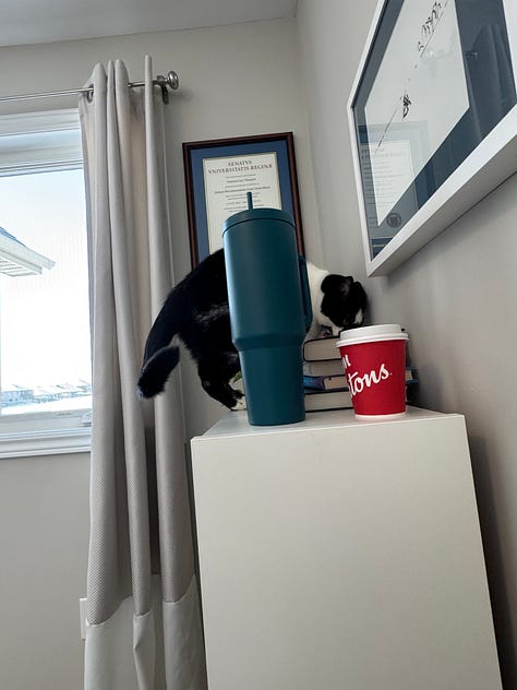 This feline shenanigans followed a morning that was off to a very slow start, as I waited for Ryan to finish some of his own work so he could drive me to the optometrist for an unexpected repair to my glasses. (Success! Optometrists truly live up to this blog post of mine). It’s cold as heck here in Ottawa, and walking Clover the dog is a sluggish affair. So much for my hoped-for day of extreme productivity.